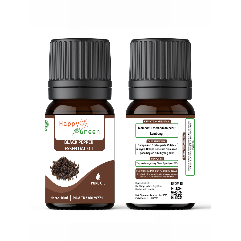 Perawatan & Kecantikan > Perawatan Tubuh > Perawatan Tubuh Lainnya > BPOM Approved Happy Green Black Pepper Essential Oil - Minyak Atsiri Lada Hitam Murni 100% untuk meningkatkan napsu makan