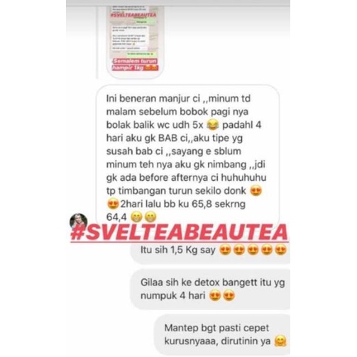 Cara mengkonsumsi Detox Tea : 1. Ambil satu kantong SVELTEA 2. Tuang air panas (100-200ml) 3. Tutup gelas dan biarkan selama 30 menit 4. SVELTEA siap untuk diminum