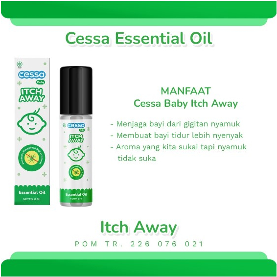 Cessa Happy Nose = Membantu Meredakan Flu & Batuk yg Diderita Oleh Bayi Cessa Fedrop = Membantu Meredakan Demam / Panas yg Diderita Oleh Bayi Cessa Lenire = Membantu Menenangkan Bayi yg Rewel / Bayi yg Menangis Terus Tanpa Sebab yg Jelas Cessa Itch Away = Membantu Menjaga Bayi Dari Gigitan Nyamuk yg Membandel Cessa Bofit = Membantu untuk Meningkatkan Sistem Kekebalan Tubuh Bayi Cessa Bye Bye Owl = Deep Sleep / Tidur Nyenyak