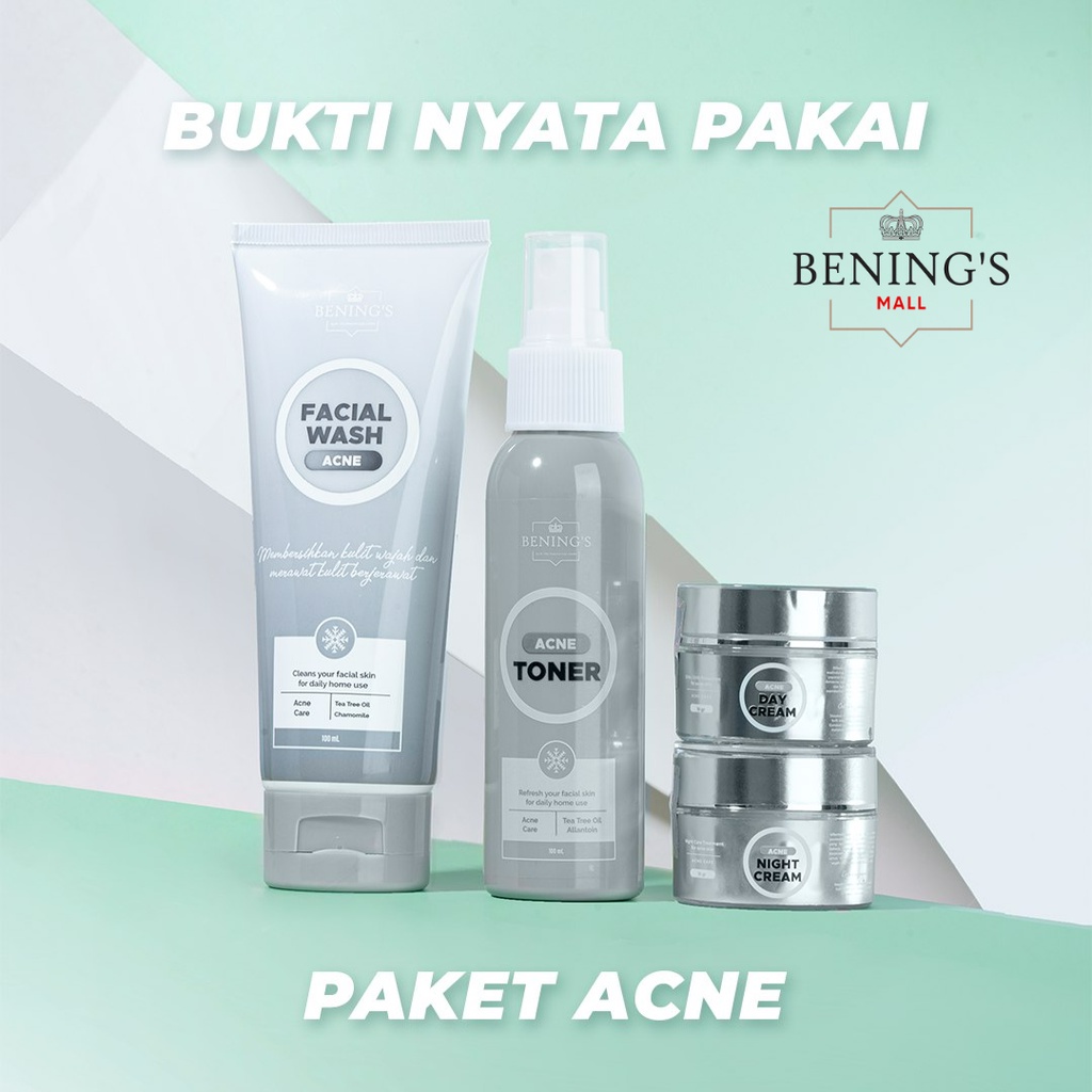 Paket Acne Jerawat terdiri dari: 1. Facial Wash Acne: BPOM NA18201206014 2. Acne Toner: BPOM NA18201206236 3. Acne Day Cream: BPOM NA18200108526 4. Acne Night Cream: BPOM NA18200108527