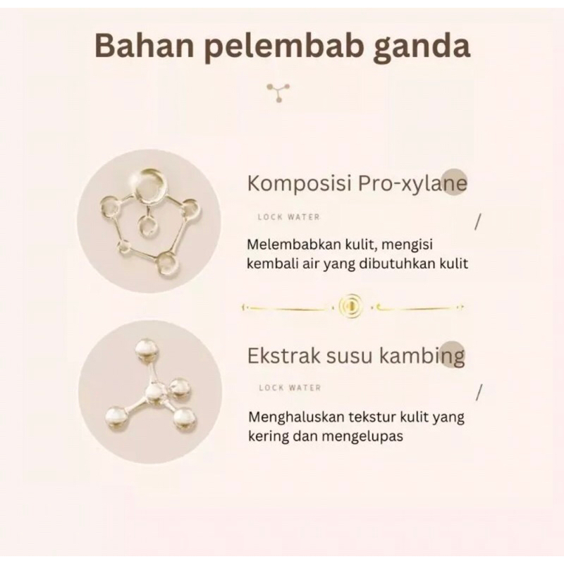 -Komposis Pro-Xylane mampu melembabkan kulit, dan mengisi kembali air yang di butuhkan kulit -Extra Susu Kambing membantu menghaluskan tekstur kulit yang kering dan mengelupas