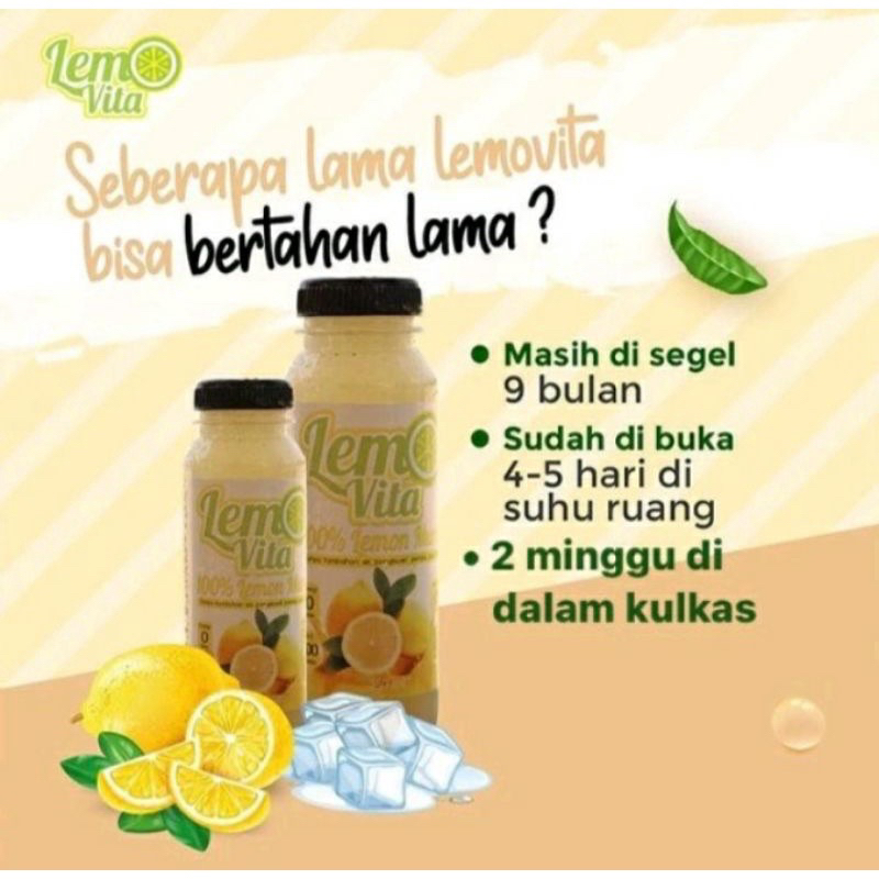 PERHATIAN: -Expire 5 bulan dari tanggal produksi, simpan di suhu ruang. Lemovita dibuat tanpa pengawet yah jadi masukkan dalam kulkas setelah dibuka dan habiskan sebelum 1 minggu.