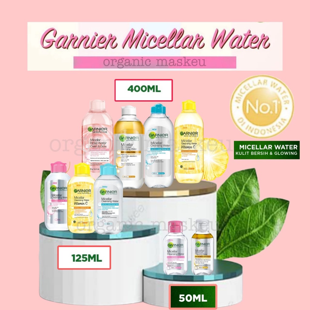GARNIER MICELLAR WATER PEMBERSIH NO 1 TERLARIS DI INDONESIA BPOM, TERSEDIA 3 UKURAN 50ml, 125ml, 400ml