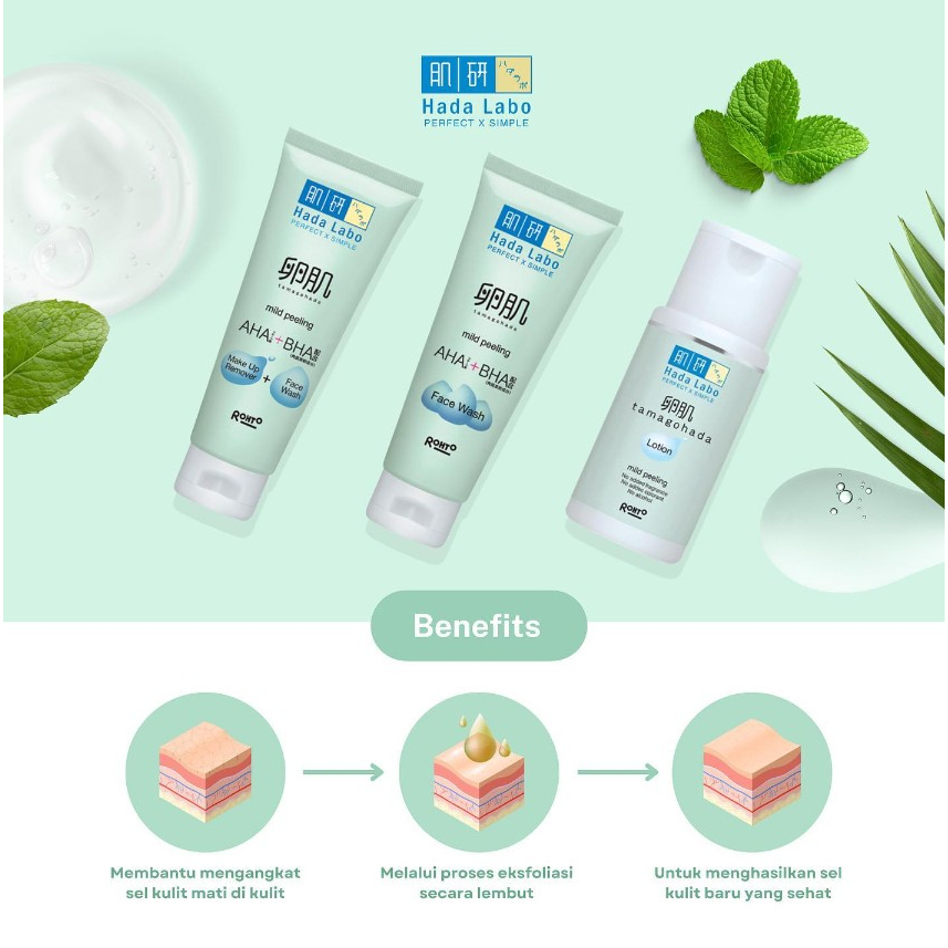Hada Labo Tamagohada Face Wash : Sabun pembersih wajah yang dapat mengikis permukaan sel kulit mati dengan lembut, serta mengangkat kotoran dan minyak pada wajah yang dapat menyumbat pori-pori. Formulanya dapat memperbaiki kulit kusam dan merawat tekstur kulit sehingga kulit tampak lebih lembut dan cerah.