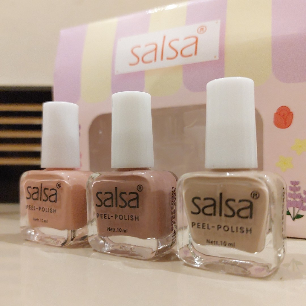 KELEBIHAN SALSA 1. Tersedia dalam Set berisikan 3 pcs kutek peel off dengan varian warna yang cantik serta pigmented, cocok digunakan sehari-hari. SALSA Peel Polish dirancang dengan teknologi quick-dry sehingga cepat kering dan aman tidak merusak lapisan kuku.