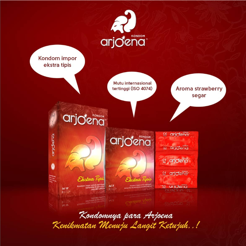 Arjoena Condom Extra Tipis : Arjoena Kondom Extra Tipis dapat membuat Anda dan pasangan merasa aman dan nyaman saat berhubungan intim. Terbuat dari bahan yang berkualitas tinggi, Arjoena Kondom telah dipilih oleh banyak pasangan di Indonesia. Selain itu, pemilihan bahan lateks yang tipis membuat seakan-akan Anda seperti tidak memakai pengaman.