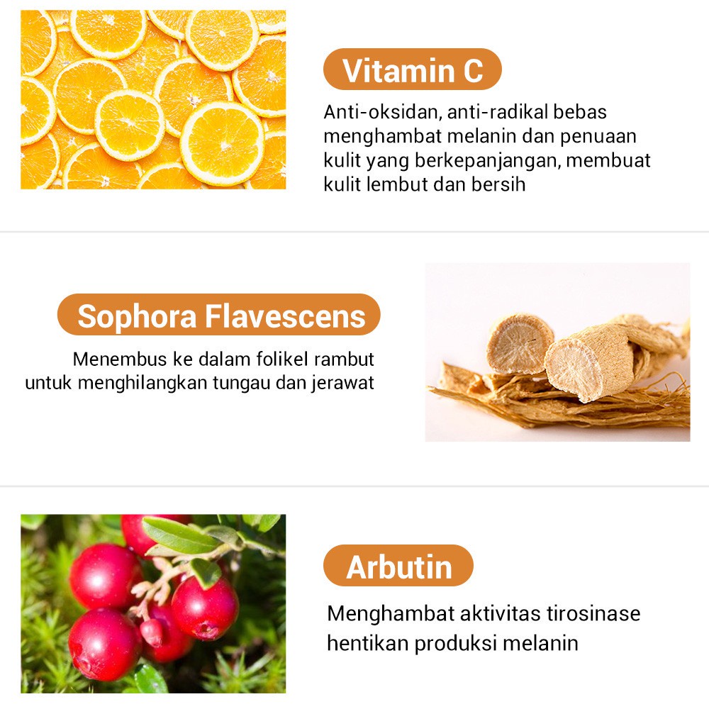 [INDIKASI] Formulanya lembut dan buihnya halus serta padat. Mengandung Vitamin C dan sutra kolagen, dengan kemampuan anti-oksidan, pembersih wajah vitamin c ini dapat sangat membersihkan dan melembabkan kulit, mengurangi dan menguraikan melanin, memperbaiki kulit kusam, mencerahkan membuat kulit menjadi segar, nyaman dan elastis. [INDIKASI] Mengandung bahan Vitamin C molekul kecil dan ekstrak tumbuhan mutiple, dengan daya serap yang sempurna dan penyerapan yang mudah, toner wajah ini memiliki kemampuan pelembab yang kuat yang dapat meresap ke dalam kulit secara mendalam. Dapat menyeimbangkan PH kulit, memperbaiki kulit kusam dan mencerahkan warna kulit.