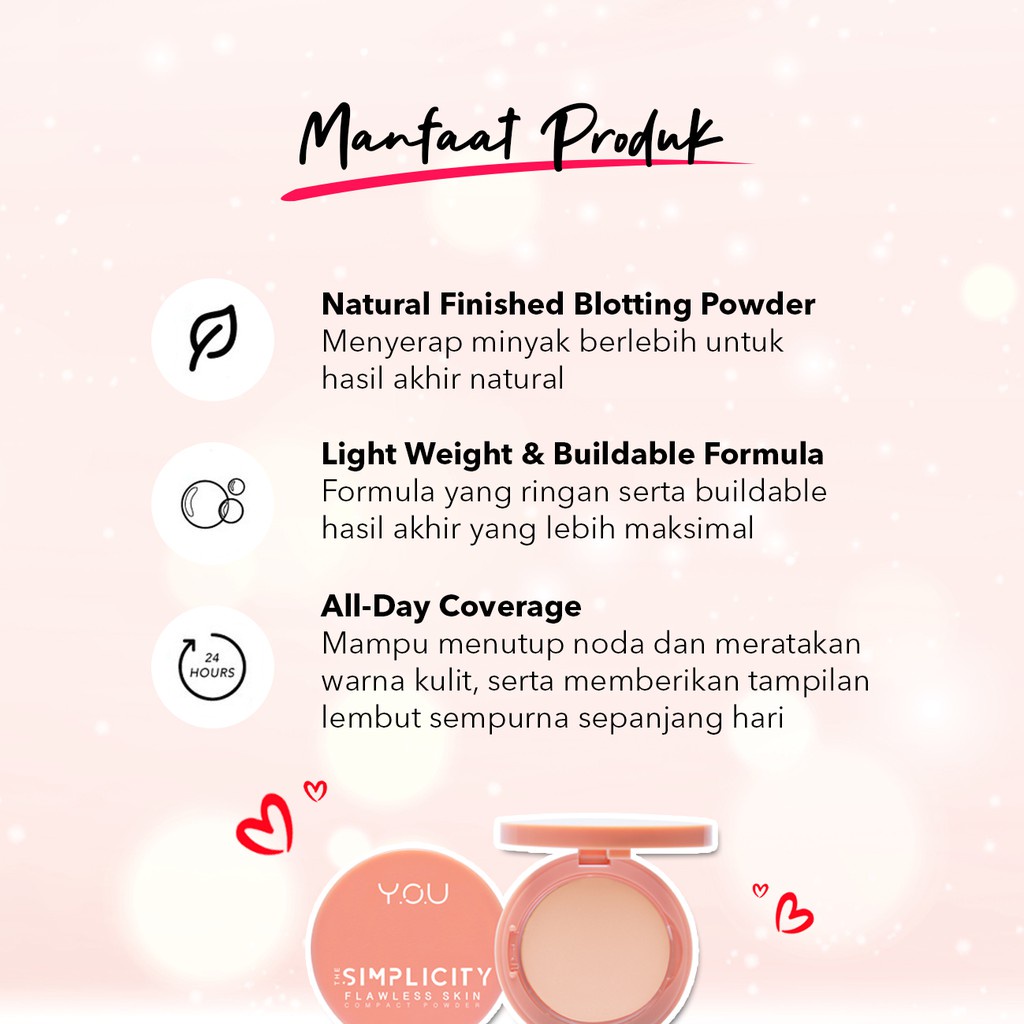 Detail [BPOM] [NEW] YOU Simplicity Flawless Compact Powder | Bedak Padat | Natural Makeup Tahan Lama | Sebum Control | Powder