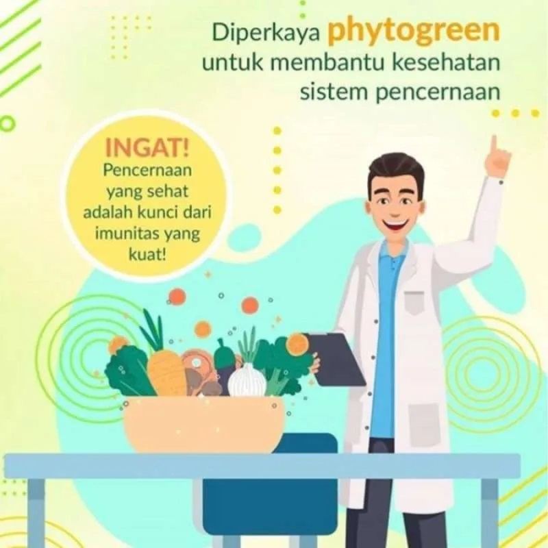 Manfaat: 1. Menjaga kesehatan dan meningkatkan daya tahan tubuh anak terhadap penyakit & infeksi serta mempercepat penyembuhan ketika sakit 2. Sebagai antioksidan untuk menetralisir efek radikal bebas dan zat polutan lainnya yang dapat merusak sel tubuh serta berperan sebagai anti kanker & tumor 3. Membantu pembentukan tulang & gigi yang kuat terutama pada anak dalam masa pertumbuhan 4. Plus Phytogreen untuk menjaga kesehatan sistem pencernaan & pernapasan anak