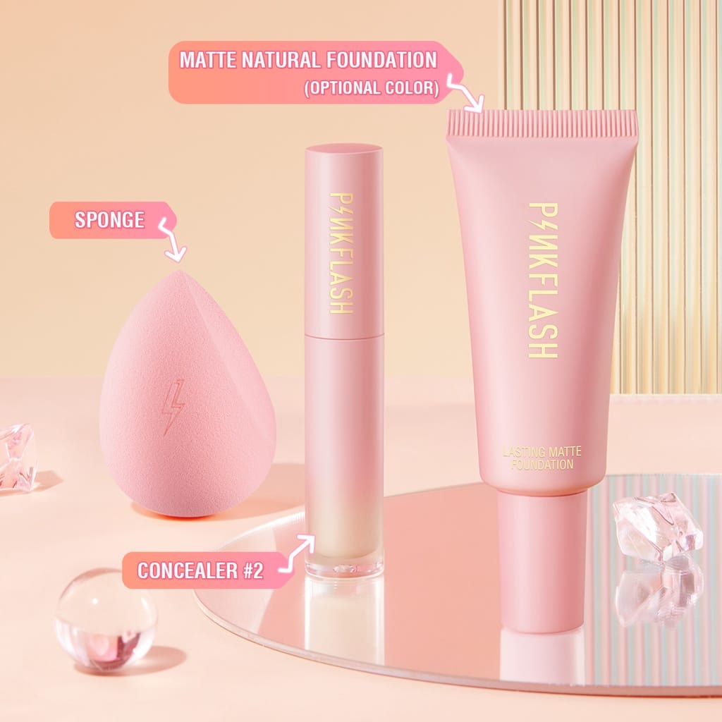 Perawatan & Kecantikan > Kosmetik Wajah > Foundation > [BPOM&ORI] PINKFLASH 3PCS/ Set Makeup set Foundation+Liquid Concealer Long Lasting Matte Oil control Waterproof