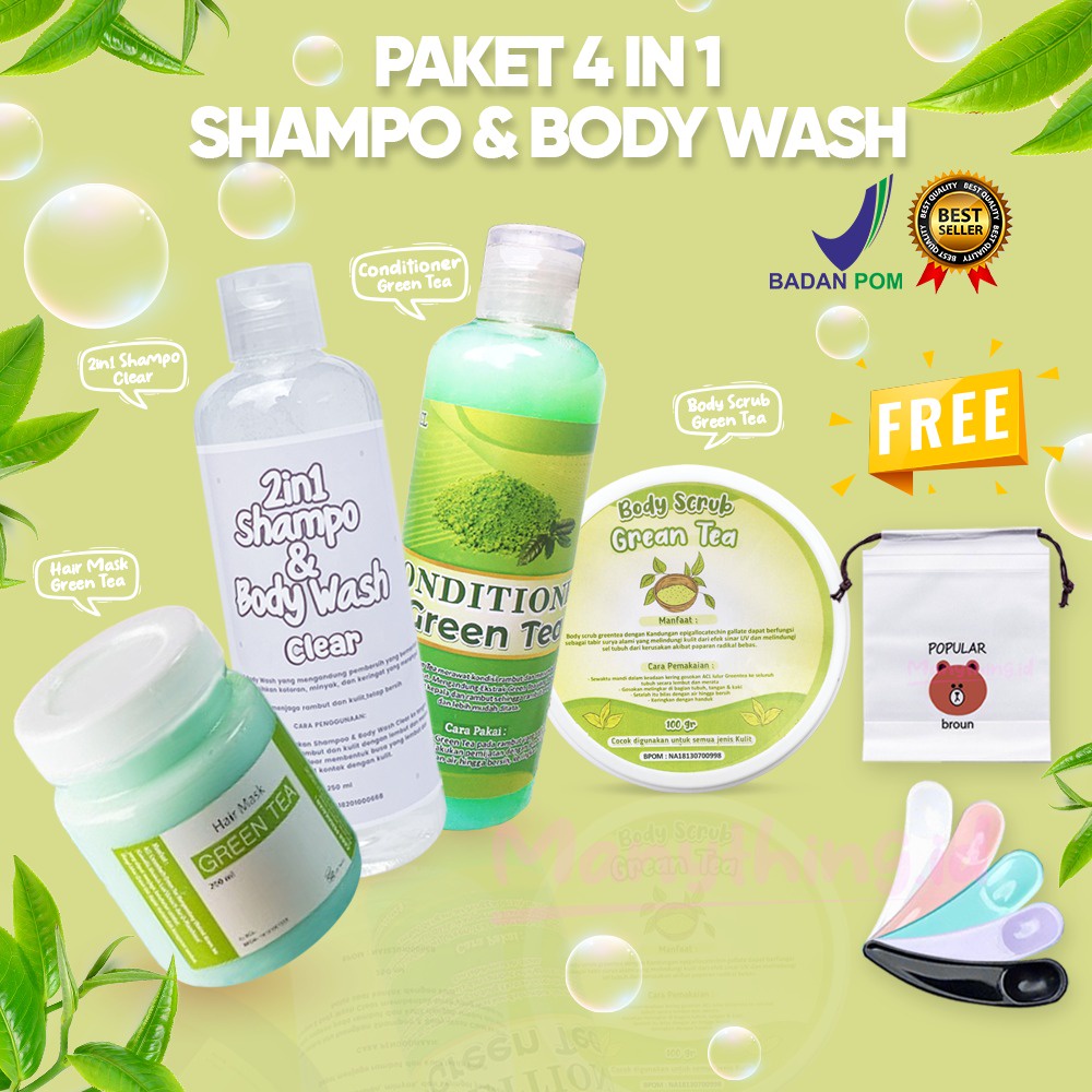 Detail [BPOM] PAKET SHAMPOO & BODY WASH 4IN1 - PAKET SHAMPOO & BODY WASH - HAMPERS SHAMPOO & BODY WASH FREE POUCH - HAMPERS SHAMPOO & BODY WASH ISI 4 PCS