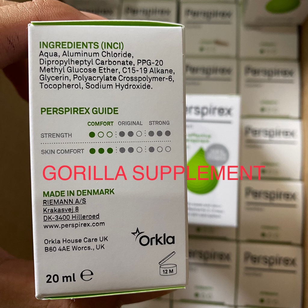 Perspirex Comfort Antiperspirant Roll On - 20ml > Nomor registrasi BPOM: NC10200900001 > EXP date: 2 tahun dari MAN DATE / Tanggal Buat > Hati hati dengan barang palsu tanpa MAN DATE dan BPOM Perspirex Comfort diformulasikan untuk memberikan perlindungan keringat dan bau yang sangat efektif. Teknologi skin care system memastikan kulit terasa lebih baik dan kering. Perspirex Comfort adalah pilihan yang tepat bagi mereka yang mengalami keringat berlebih dengan kondisi kulit sensitif.