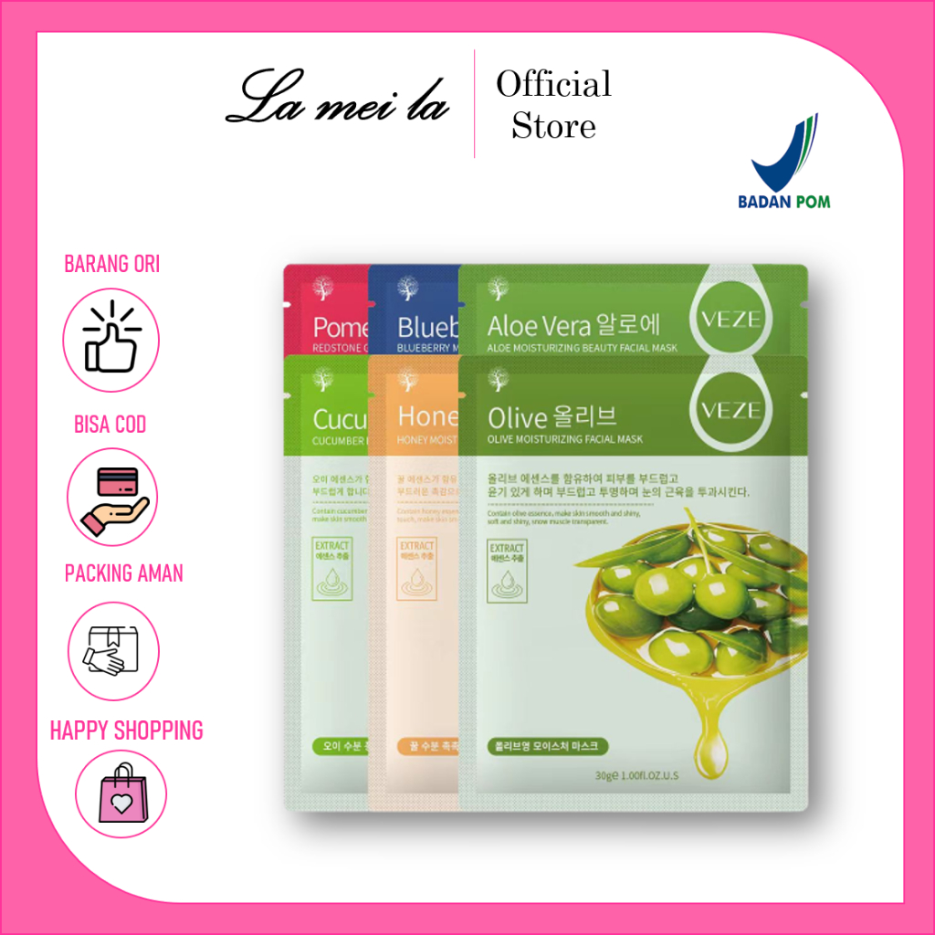 Detail [BPOM] Veze Sheet Mask Masker Wajah Korea Blueberry Aloevera Pomegranate Honey Cucumber Olive