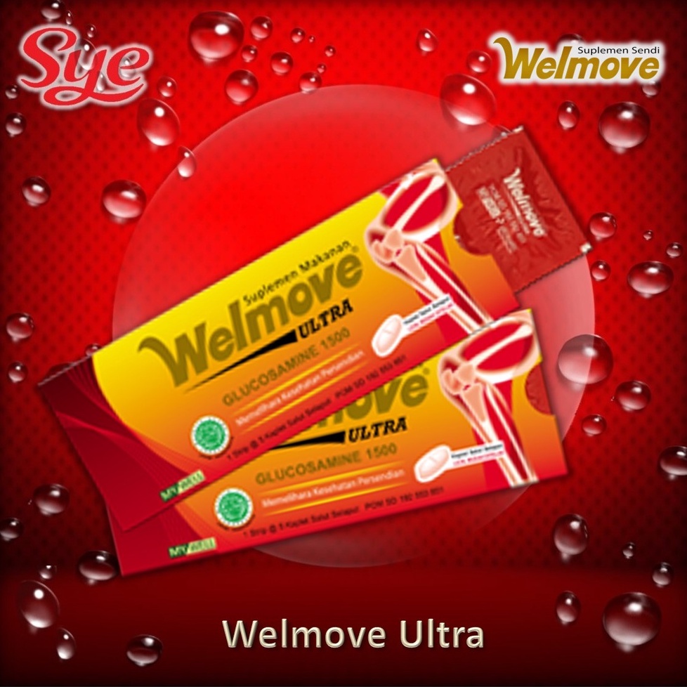 Welmove ULTRA Suplemen Makanan Isi 5 Kaplet : Welmove adalah nutrisi sendi yang bekerja melumasi persendian sehingga sendi jadi mudah untuk digerakkan. Welmove mengandung glucosamin, chondroitin, vitamin dan mineral yang cocok dan efektif atasi kaku dan nyeri pada sendi lutut, pinggang, bahu dan sendi lainnya. Kalo sudah terasa kaku, sendi susah gerak, jangan tunggu sampai nyeri, minum Welmove.