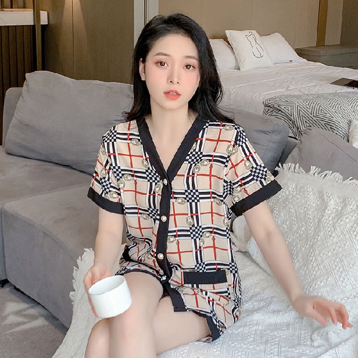 Pakaian Wanita > Pakaian Tidur & Piyama > Piyama > 【 Bra Mall 】BM-384 iyama Wanita Dewasa Model Kancing Depan Mewah HP Lengan Pendek Celana Pendek Import High Quality Sleepwear