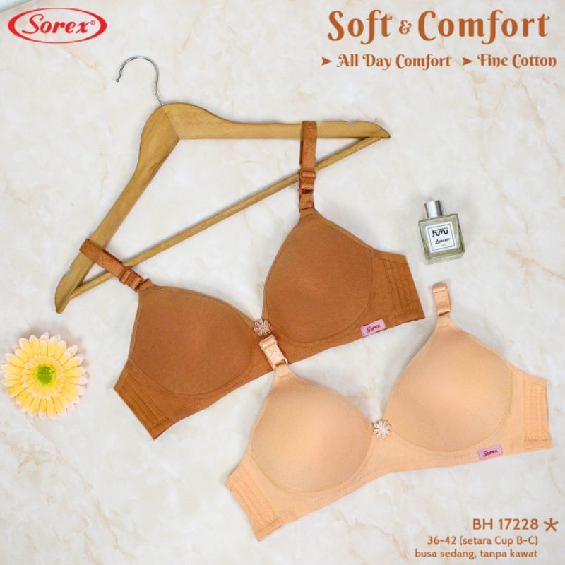 Detail Bra Sorex 17228 Super Soft Busa Tanpa Kawat Cup Besar Kait 3 Setara Cup B-C