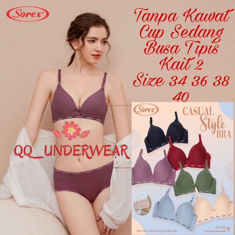Pakaian Wanita > Pakaian Dalam > Bra > Bra Sorex 17232 Bh Tanpa Kawat Busa Tipis Cup Sedang Size 34-40 Kait 2 / BH Sorex 17232 Super Soft Terlaris / Bh Sorex 17232 / Bra Sorex 17232
