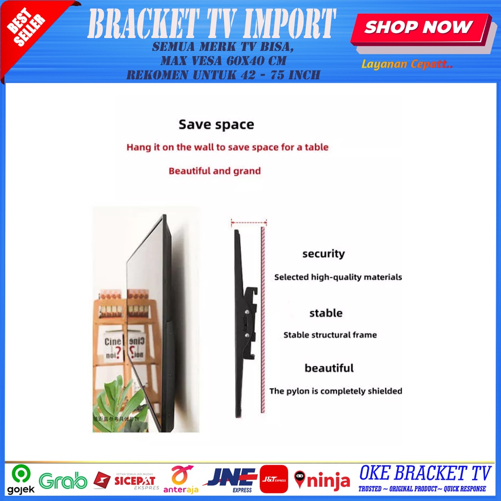 Bracket Bereket Braket TV LED LCD Dinding 42 - 75 inch / Tv Wall MountBracket Bereket Braket TV LED LCD Dinding 42 - 75 inch / Tv Wall MountBracket Bereket Braket TV LED LCD Dinding 42 - 75 inch / Tv Wall Mount
