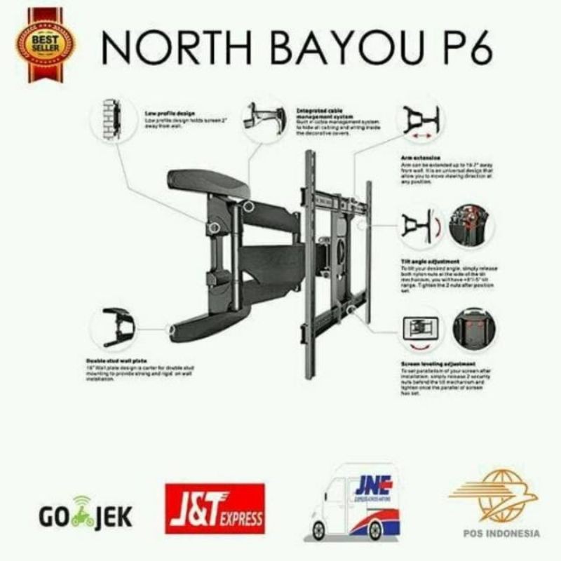 Detail BRACKET BREKET LED NORTH BAYOU NB P6/Swivel Untuk Ukuran TV LED,LCD, Plasma "45 - 75"inchi ORIGINAl