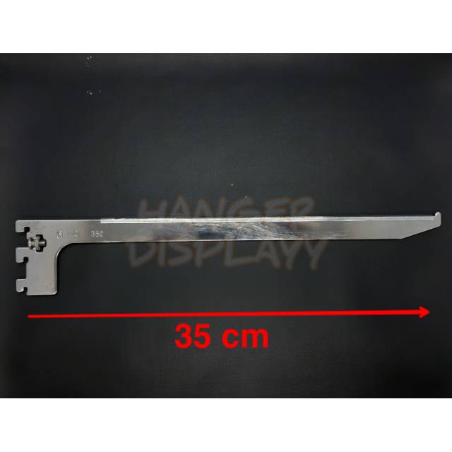 Bracket kaca ini terbuat dari bahan chrome sehingga kuat dan tidak berkarat. Bracket kaca ini mempunyai panjang 35 cm dan mempunyai pelindung silicon pada bagian permukaan yang menyentuh kaca sehingga kaca tidak akan slip dan tergores