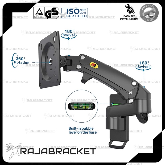 Bracket Monitor 17 s/d 27 inch, Gas Spring Full Motions Swivel Wall Mount Double Extension NB F150 (Upgrade dari F120).
