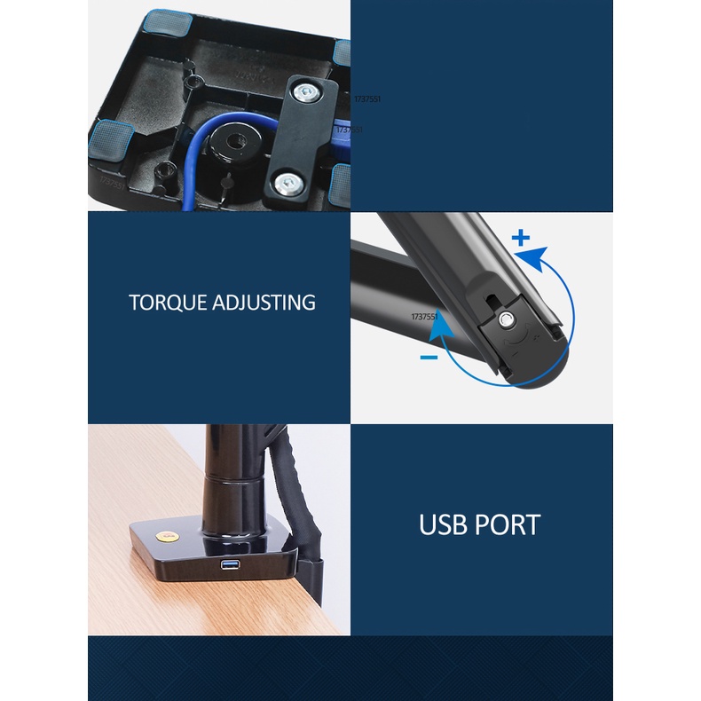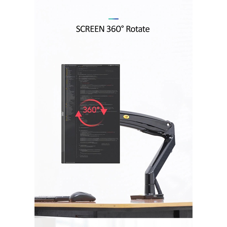 * Highly and ultra-flexible movement to reposition with just a touch *Built in durable and everlasting mechanical spring for upright movement. *Longer extension and retraction arm to gain higher upright traveling distance *360° swivel arms and 360° interface rotation with tilt angle for anti-glare *Cable management feature conceals and routes cables under arm *Maximum ergonomic comfort to relieve eye, neck and back strain. Promoting wellness and productivities in daily routine and home entertainment. *Improvise sit-stand work-station and no expensive height-adjustable tables or chairs required. * Designed in both edge clamped and grommet mounting, it isimple and easy to install, effortless operation. * Casted aluminum alloy with finest polished and chromed surface or coated black