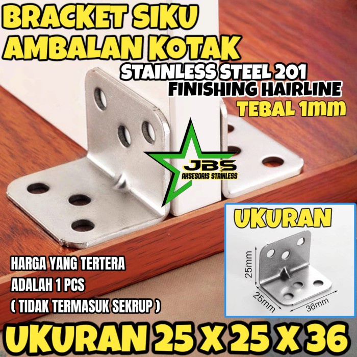 BRACKET SIKU L PENYANGGA (HL SLV) 25x25x36MM (LBG 6 ZZ )STAINLESS 201
