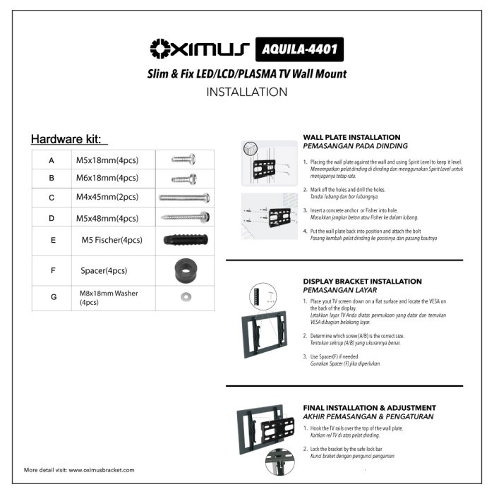 Detail Bracket TV LED 22" - 55" Oximus Aquila - Slim & Fixed LED / LCD / PLASMA TV Walll Mount