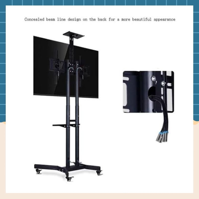 Stand Bracket Import 32"-75" Cocok di letakkan di Lobby Kantor Pameran Ruang Meeting Ruang Tunggu dll Mudah di Pindah-pindah panjang Tiang 150cm Tinggi Rak bisa di sesuaikan Roda memiliki kunci pengaman Bracket Up & Down 15 derajat