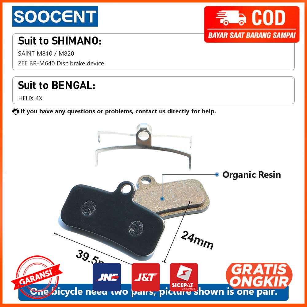 Spesifikasi SOOCENT Brake Pads Rem Sepeda Bike Shimano Saint M810/M820 S-31 Material : Resin Dimensi : 39.5 x 24 mm Lain-lain : Kesesuaian: Shimano Saint M810, M820, ZEE BR-M640 dan Bengal Helix 4X