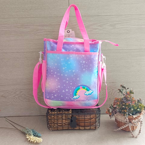 Fashion Bayi & Anak > Tas Anak Perempuan > Tas Selempang & Bahu > [Brandedbaby] TOTEBAG IMPORT ANAK PEREMPUAN PINK BIRU UNGU / SLING BAG ANAK PEREMPUAN GRADASI UNTUK KURSUS ATAU LES / TAS KURSUS ANAK PEREMPUAN RAINBOW