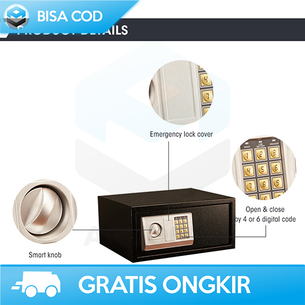 Alat ini merupakan kotak brankas untuk menyimpan barang berharga dengan fitur kata kunci kombinasi angka. Terdapat tombol pada bagian depan brankas untuk mengakses dan menentukan kata kunci yang diinginkan, selain itu terdapat slot kunci bagi Anda yang tidak ingin menggunakan kata kunci kombinasi angka saat membuka brankas. Gunakan kotak brankas ini untuk menjaga barang berharga dari hal-hal yang tidak diinginkan.