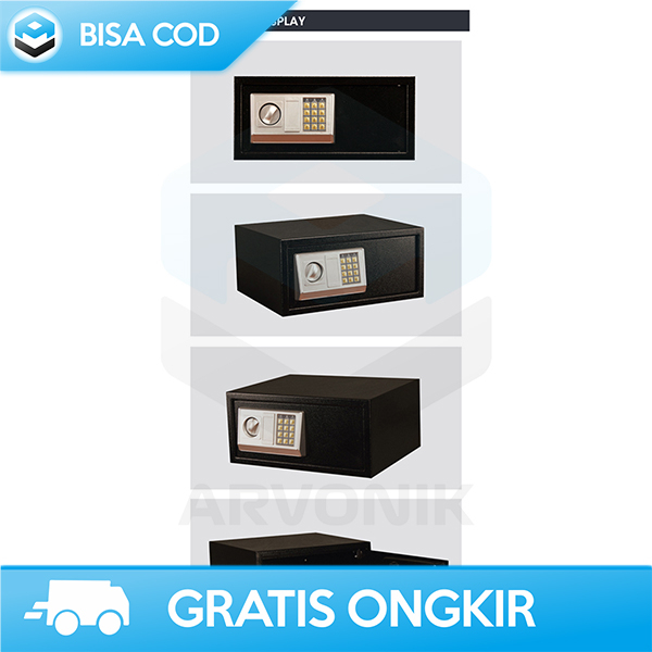 Dengan Kata Kunci Dapat diakses menggunakan kombinasi angka sehingga tidak mudah untuk dibobol. Terdapat knob serta kunci darurat agar dapat membuka kotak brankas langsung tanpa kode yang sudah disetting sebelumnya.