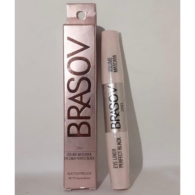 Brasov Original 2in1 Mascara & Eyeliner Perfect Black Waterproof Original 100% Ada No.BPOM di kemasan