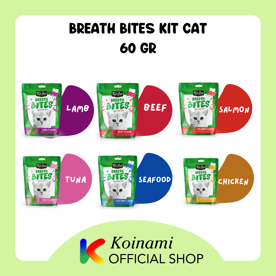 Breath Bites cemilan pembersih gigi kucing dengan rasa lezat yang disukai kucing Anda, camilan renyah ini dirancang khusus untuk membantu menjaga gigi kucing Anda agar tetap bersih dengan mengurangi plak dan karang gigi saat diberi makan setiap hari.