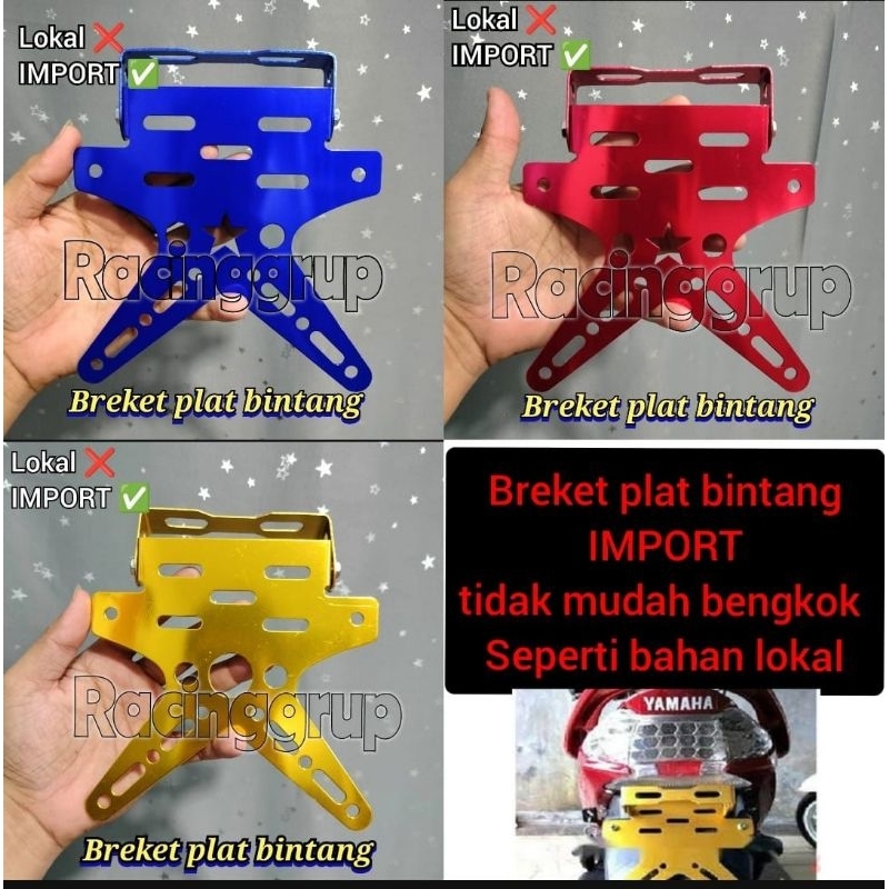 Your browser does not support the video tag.Video perkenalan produk Breket plat nomor model bintang import. Sumber: Shopee.