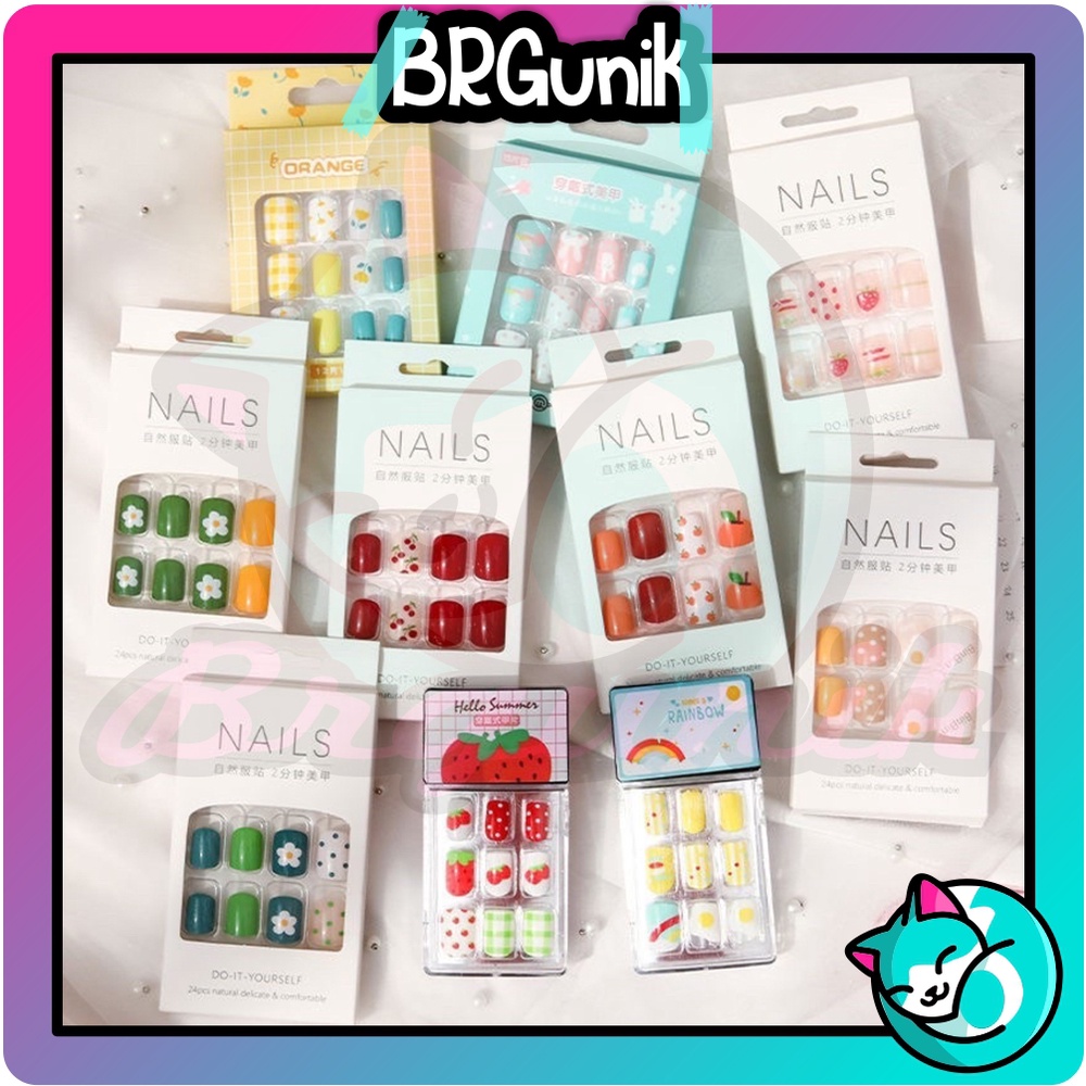 Detail BRGUNIK 24 Pcs Kuku Palsu Dan Lem Fake Nail Art 3d Kuku Palsu Tahan Air 24 Pcs Kotak Free Lem R474