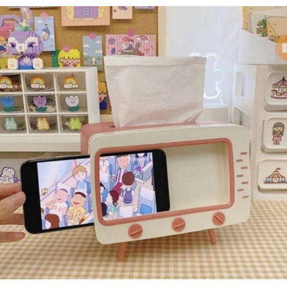 Perlengkapan Rumah > Organizer Rumah > Tempat Tisu > BRGUNIK Kotak Tissue Box Organizer Bentuk TV Tempat Tisu + Stand Phone Holder / Home Office Dekor R276