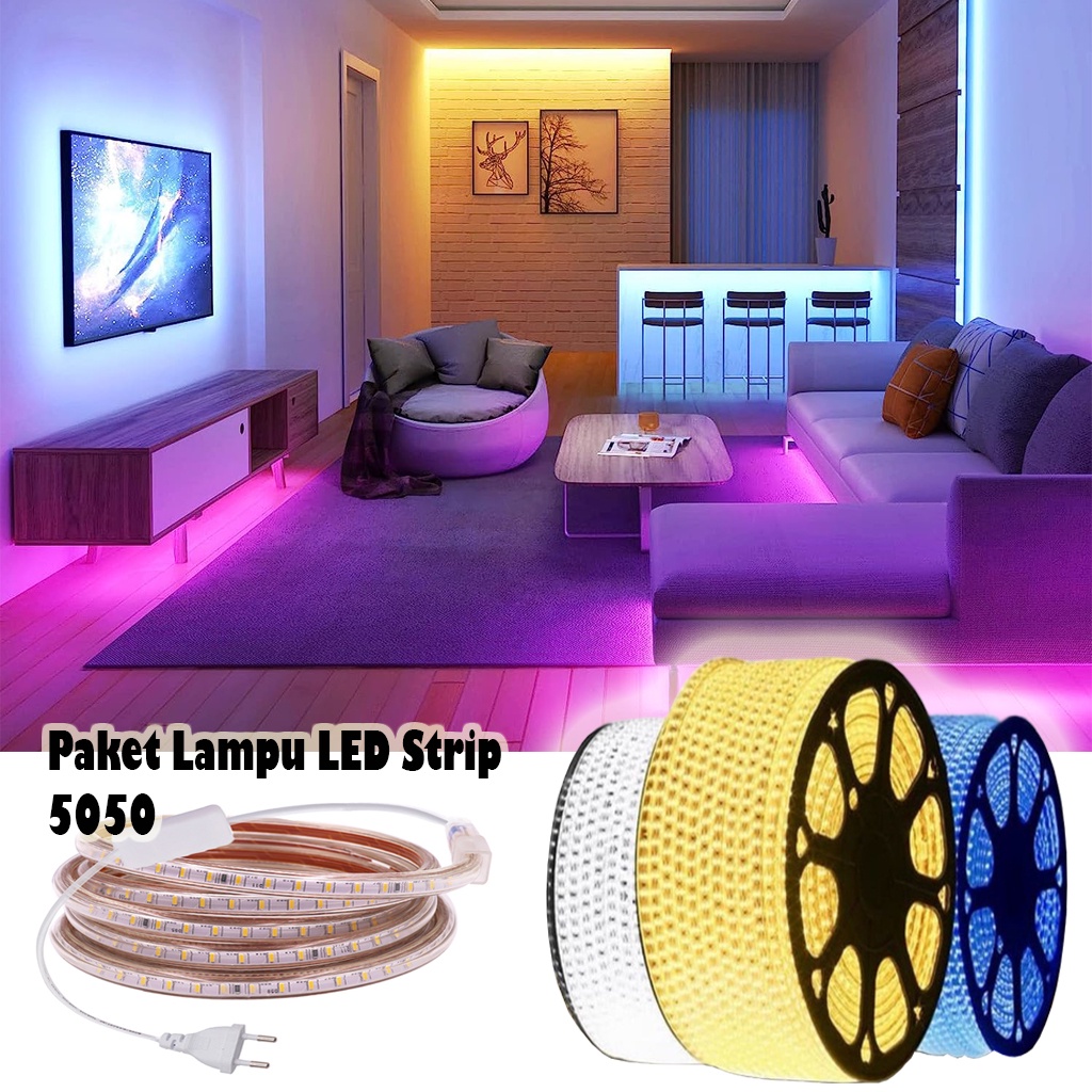 Detail BRGUNIK Paket Lampu LED Strip Selang 5050 SMD AC 220V Meteran Outdoor Indoor Waterproof E026