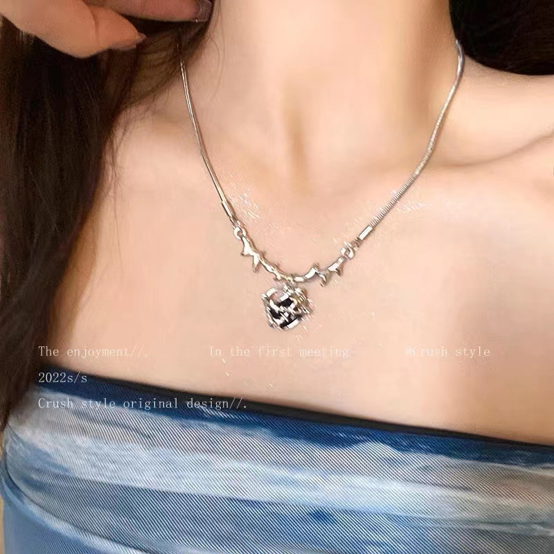 Detail Briar Cinta Kubus Liontin Kalung Y2K Baja Titanium Punk Hip Hop Wanita Necklace