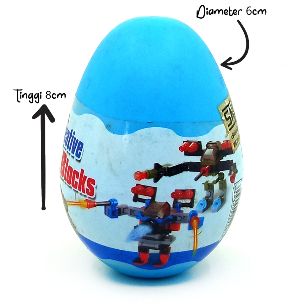 Brick Robot Egg, telur berisi mainan block yang dapat dirakit. Terbuat dari material plastik yang sangat aman untuk anak-anak. Dapat melatih kemampuan motorik anak dan membangun kreativitas.