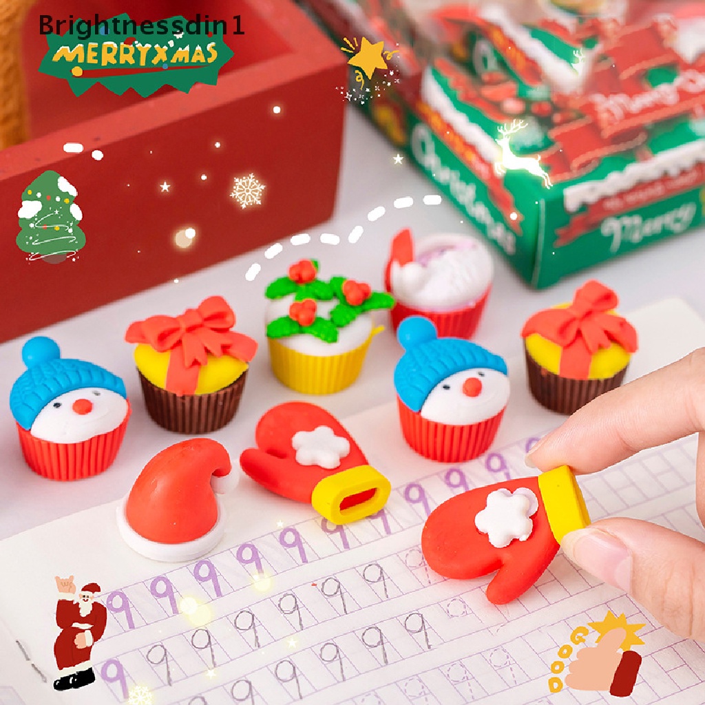 [Brightnessdin1] 1set Anak Christmas Eraser Set Alat Tulis Natal Kado Siswa Sekolah Tk Perlengkapan Sekolah Stationery Set Butik