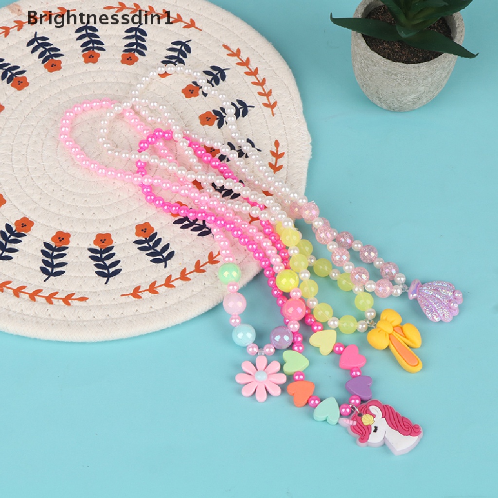 Aksesoris Fashion > Kalung > Choker > [Brightnessdin1] 2pcs/set Kalung Anak Perempuan Unicorn Bunga Kartun Putri Perhiasan Gadis Gelang Aksesoris Anak Perhiasan Hadiah Butik