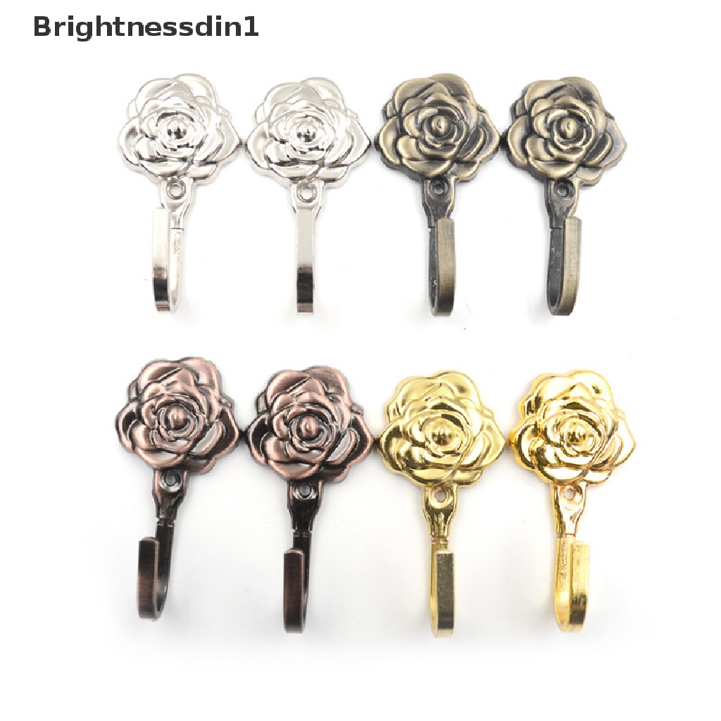 [Brightnessdin1] 2pcs/set New Rose Pattern Metal Curtain Hooks Rumah Dinding Pintu Dekoratif Kait Belakang Butik