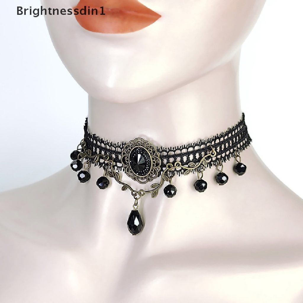 [Brightnessdin1] Hitam Renda Choker Kalung Gothic Chokers Vintage Kristal Liontin Kalung Halloween Perhiasan Punk Rantai Aksesoris Untuk Wanita Dan Gadis Butik