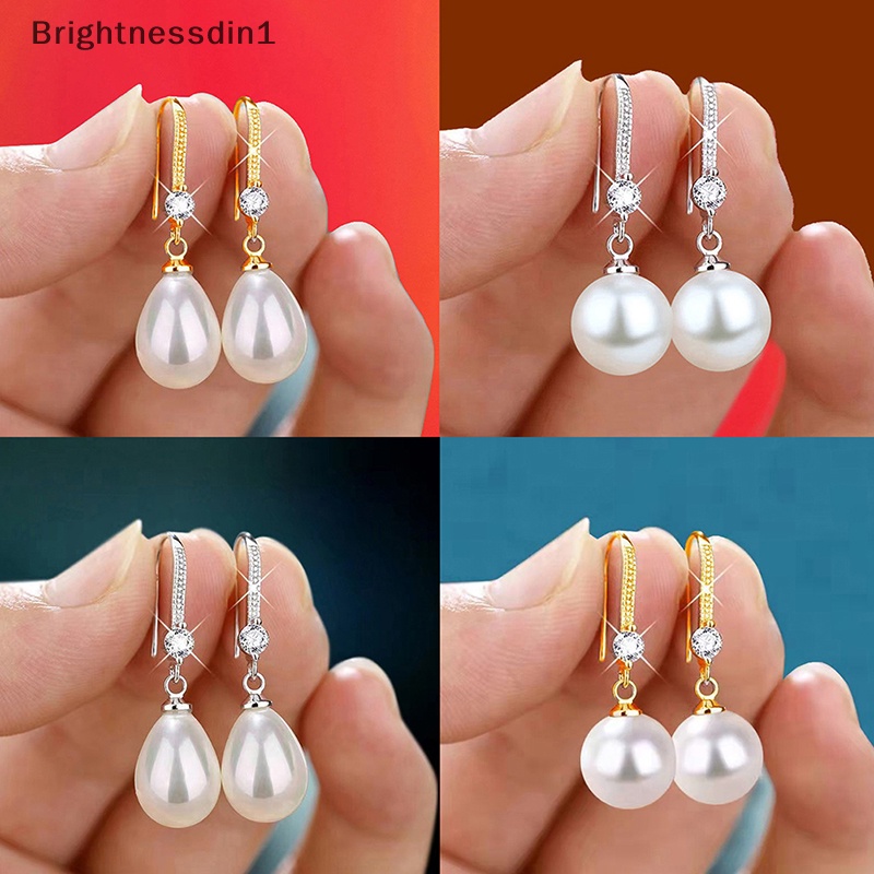 Aksesoris Fashion > Anting > [Brightnessdin1] Perhiasan Wanita Tetesan Air Anting Mutiara Wanita Merah Putih Bulat Mutiara Oval Anting Pernikahan Pertunangan Valenes Day Gift Boutique