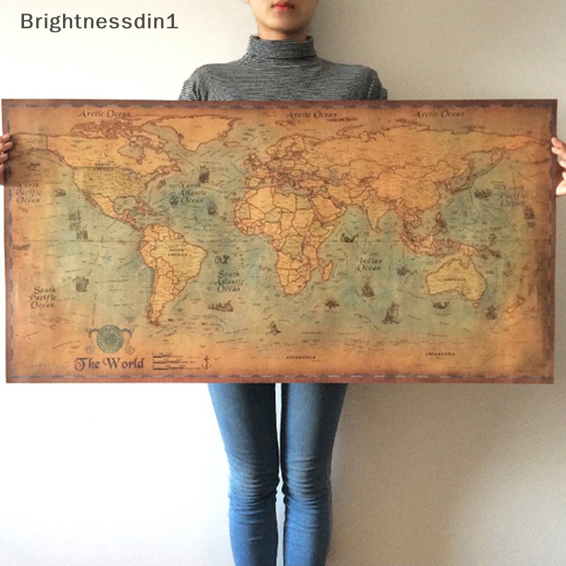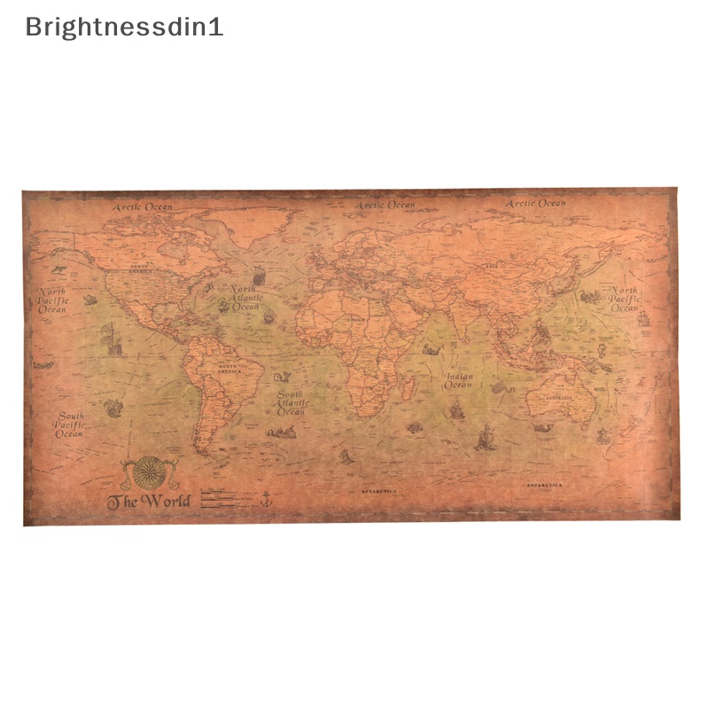 [Brightnessdin1] The old World Map large Vintage Style Poster Kertas Retro Dekorasi Rumah 100cmx51cm Butik