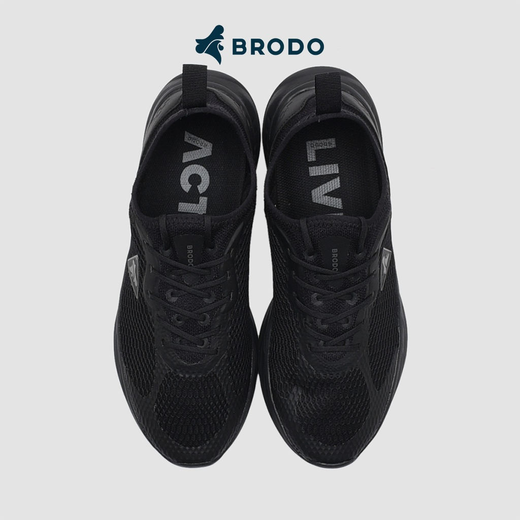 Detail BRODO Active Pacer Black White Full Black Original Sepatu Sneakers Sport Running Unisex