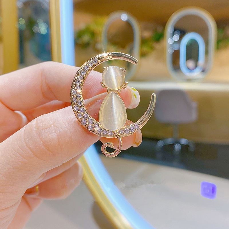 Detail Bros Bulan Kucing Mutiara Tren Kualitas Tinggi Pakaian Wanita pin Paduan