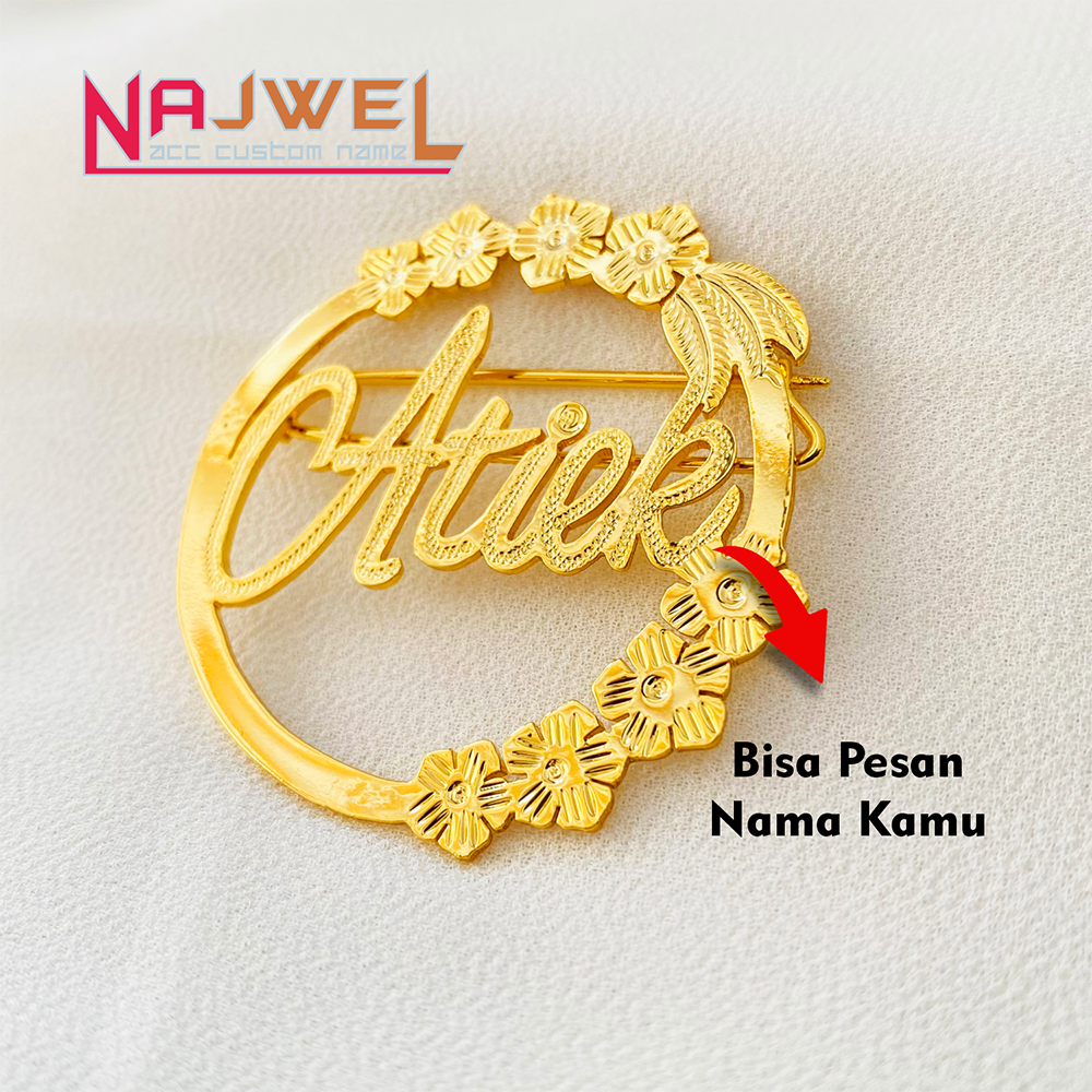 Detail Bros Hijab Titanium Custom Nama Anti Karat Fashion Aksesoris Hijab Muslim Wanita Premium BN-08